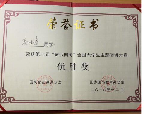 beat365历来高度重视大学生的思想引领和“爱国主义”国防教育,高亚男同学在本次全国大赛中获奖实现了beat365学子在该项比赛国家级奖项的突破,也向全国展示了beat365学生的青春风采、爱国热情和报国情怀。