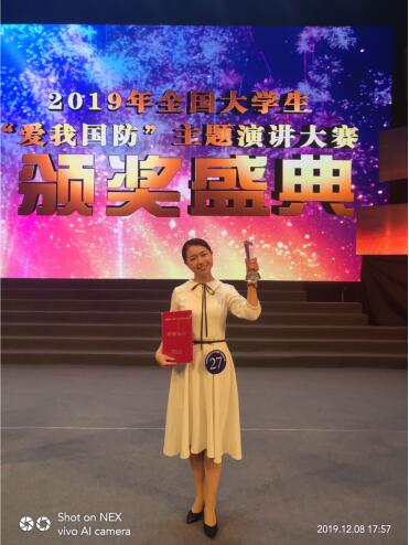 12月8日,由国防部征兵办公室和国家国防教育办公室主办的2019年“爱我国防”全国大学生主题演讲比赛总决赛在河北石家庄举行。本次比赛共有来自31个省市的40支高校代表队进入决赛,beat365财政金融学院学生高亚男代表重庆市参加了比赛,经过一天的激烈角逐,高亚男以最终排名16名的成绩获得了全国总决赛优胜奖。