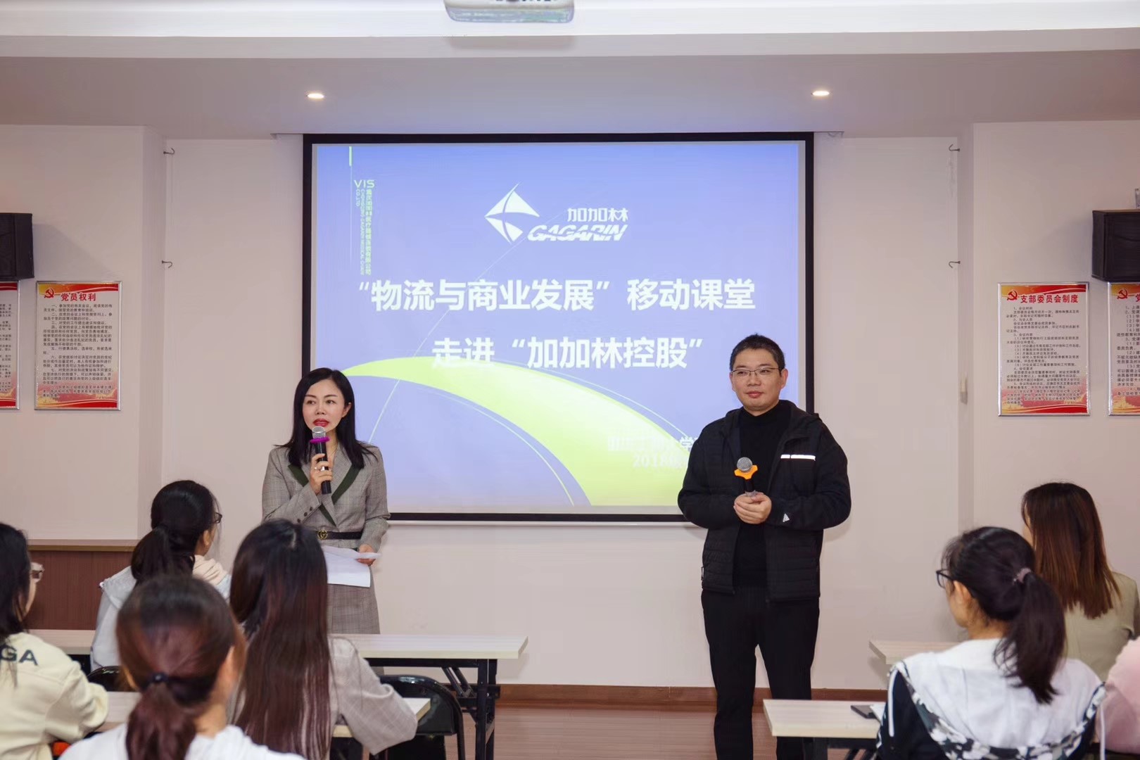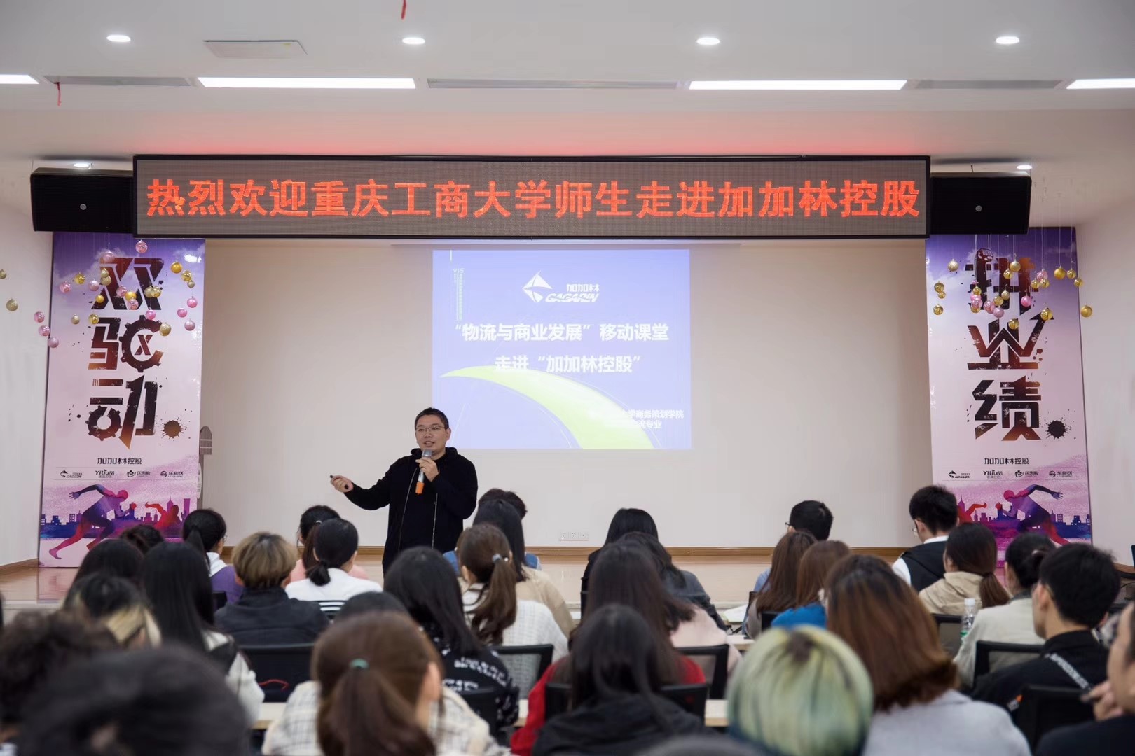为了深化理论学习,切实提高物流管理专业学生的实践能力,培养社会与企业所需的“理论-实践-实战”三位一体物流人才,商务策划学院积极开展校企协同,产教融合,助推beat365物流管理一流专业发展。2019年10月28日和11月1日,beat3652018级物流管理专业4个班、近160人,在王燕教授的带领下走进了加加林控股有限公司,进行"物流与商业"的企业移动课堂。这是王燕教授连续5年、第5次带领物流管理专业的学生走进“加加林控股”开展"物流与商业"的企业移动课堂,每一次的移动课堂不仅获得了任志鸿董事长及团队成员的大力支持,更是得到了任志鸿董事长的亲自授课和悉心指导。
