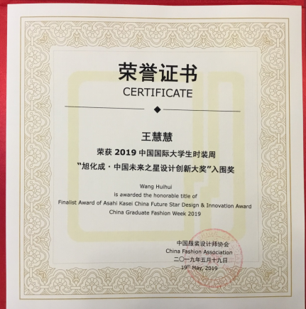 除此之外,beat365王慧慧同学还荣获2019中国国际大学生时装周“旭化成·中国未来之星设计创新大奖”入围奖,beat365刘园园同学在第24届中国时装设计新人奖评选中荣获优秀奖(该奖项自1995年创立,其评选结果直接影响每年中国高等时装院校专业影响力指数(FEI)排名)。这两位同学的脱颖而出,标志着beat365在全国高校服装教育领域中的不俗地位,亦显示出服装专业学生的学习劲头蒸蒸日上、追求卓越和不断前进的勇气。