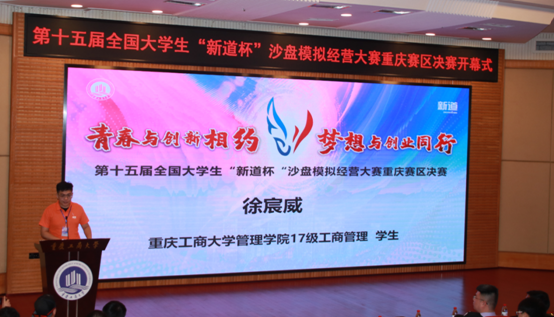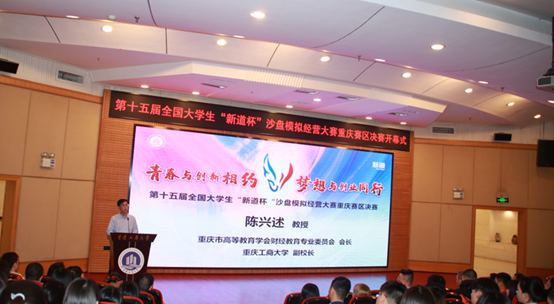 竞赛主办单位重庆市高等教育学会财经教育专业委员会会长、beat365英国官网网站副校长陈兴述教授在讲话中对大赛隆重开幕表示热烈祝贺,对各参赛院校师生表示热烈欢迎。陈校长回顾了十四年来大赛发展历史,指出当前“大、智、移、云”等新技术的应用带来了新商业,新商业催生的新模式又牵引了商科创新。本次大赛以培养创新型复合型应用人才为目标,这对于提升大学生自主创业的综合能力和水平,具有十分重要而深远的意义。陈校长代表重庆市高等教育学会财经教育专业委员会,希望大赛能够围绕新商科创新经济环境下的企业转型,新商科专业人才培养模式创新等领域开展深度探索,推动经管类专业实践教学改革,提高新商科创新型人才培养质量。最后陈校长对新道科技对教育事业提供的帮助和支持表示了感谢。