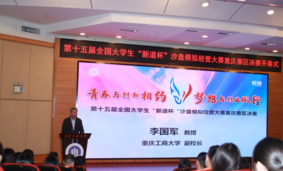 副校长李国军教授在开幕式上致欢迎辞。李校长首先向主办单位重庆市高等教育学会财经教育专业委员会、新道科技股份有限公司的辛勤付出表示感谢,向前来参与本次大赛的兄弟院校和社会各界表示热烈欢迎。随后,李校长向参赛院校师生介绍了学校总体概况、管理学院和经管实验中心的基本情况,回顾了beat365英国官网网站学生参加沙盘大赛的历史和成绩,高度评价了沙盘大赛在“推动高校与行业、企业的深度合作,资源共享,搭建高校之间学习、交流的平台”方面发挥的积极影响。李校长祝愿大赛“产教融合、协同育人”的理念扎根重庆、开花结果,在培养推动大学生学术科技创新,促进青年学生全面发展方面发挥出更大作用。
