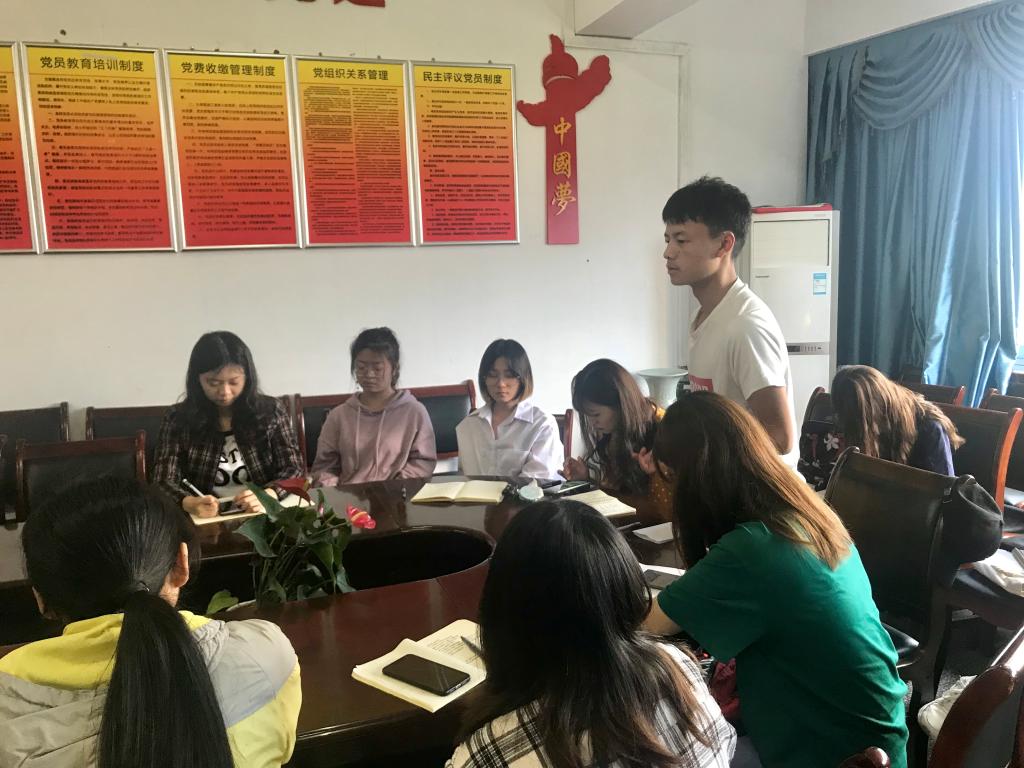 王静副书记作发言。她指出青年兴,则国家兴;青年强,则国家强。党和国家一直高度重视青年一代和青年工作,习总书记的重要讲话为青年学生的成长成才和青年工作的开展指明了方向,明确了要求,是我们开展学生工作的行动指南和根本遵循。希望大家带领广大学生认真学习习总书记在纪念五四运动100周年的讲话,牢记总书记对青年一代的殷切希望,继承和发扬五四精神,树立远大理想,热爱伟大祖国,敢于担当时代责任,勇于砥砺奋斗,勤于练就过硬本领,不断锤炼品德修为。以高度的自觉性投入到持之以恒的学习实践中,以无限的热情投入到服务师生的工作实践中,让青春在实践中发热发光,争做无愧于时代、无愧于国家的优秀青年学生。