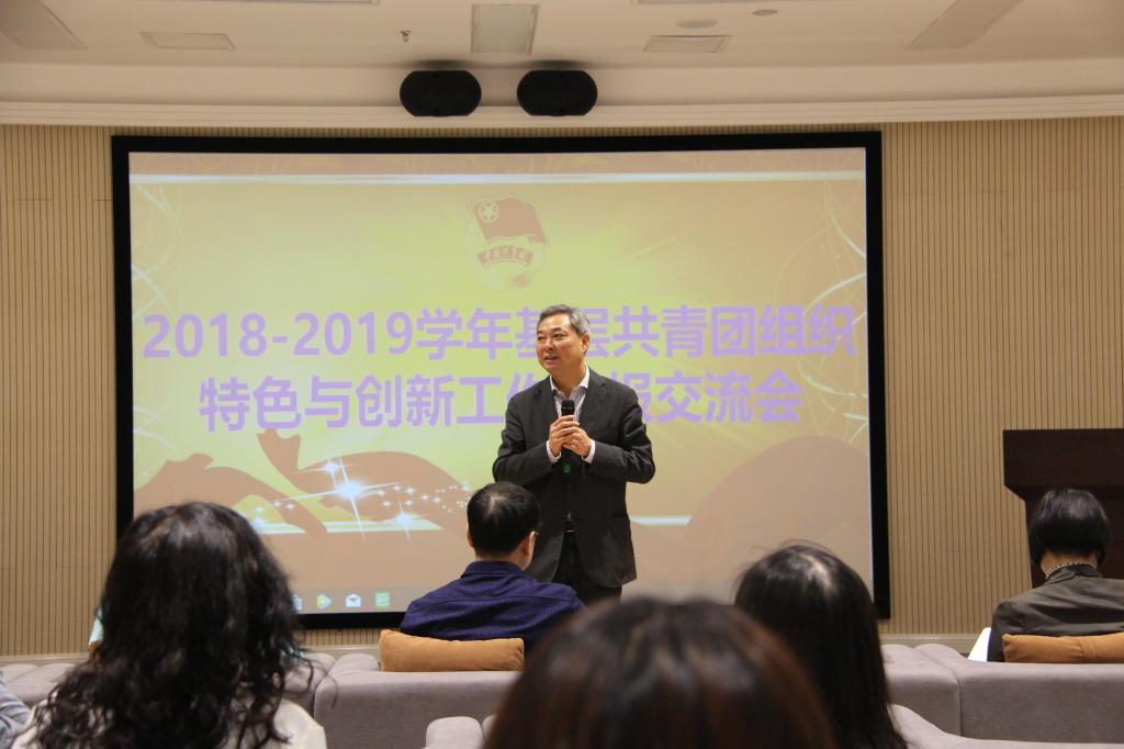 李国军副校长做总结发言。他指出,在工作汇报中,各学院共青团工作特色鲜明,各个环节做法突出了专业、社团、实践特色,贯彻落实了思想、政治引领,第二课堂育人效果显著,作风改进成果明显;各学院创新点突出,在共青团工作中深入学生,技术上有亮点,兴趣小组、社团组织等取得的进步都彰显出党建带团建工作卓越的成效。除此之外,李国军副校长提出为青年服务是一件幸福的事,在接下来的工作中要更加贴近学生,研究青年,以饱满的、全新的精神状态做好工作,对创意活动要投入更多的资源,以求取得更长远的进步。