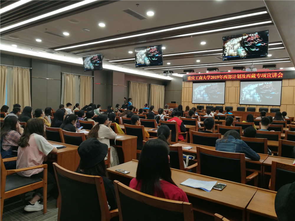 4月17日上午10时,共青团中央、教育部、财政部、人力资源和社会保障部联合召开了大学生志愿服务西部计划工作部署电视电话会议。为全面落实会议精神,进一步做好大学生志愿服务西部计划工作, 4月17日下午2时30分,校团委、招生就业处联合召开了beat3652019年西部计划宣讲会。重庆市志愿服务中心、校团委、招就处相关工作人员、来自西藏专项的志愿者代表、beat3652019届毕业生、志愿者代表共150余人参加了会议。