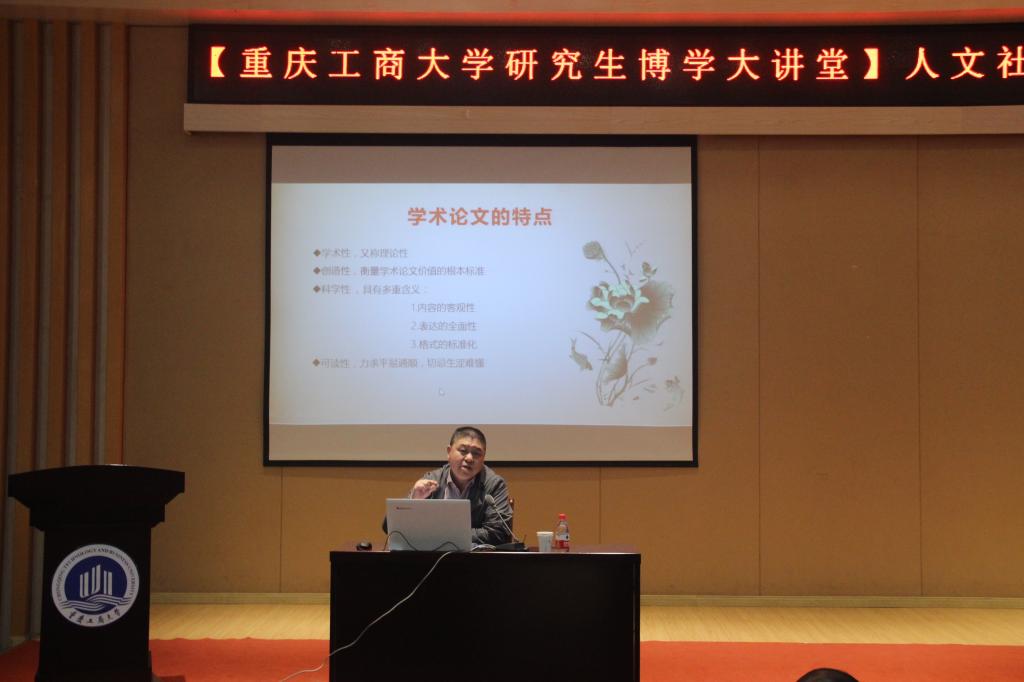 3月29日下午,本学期“研究生博学大讲堂”的第一讲在田家炳书院209报告厅举行。本次学术报告邀请到重庆市社科院《改革》杂志社副总编辑文丰安教授为beat365师生主讲“人文社科学术论文:特点、选题、写作及投稿”,研究生院领导、老师及300余名研究生参加本场报告。