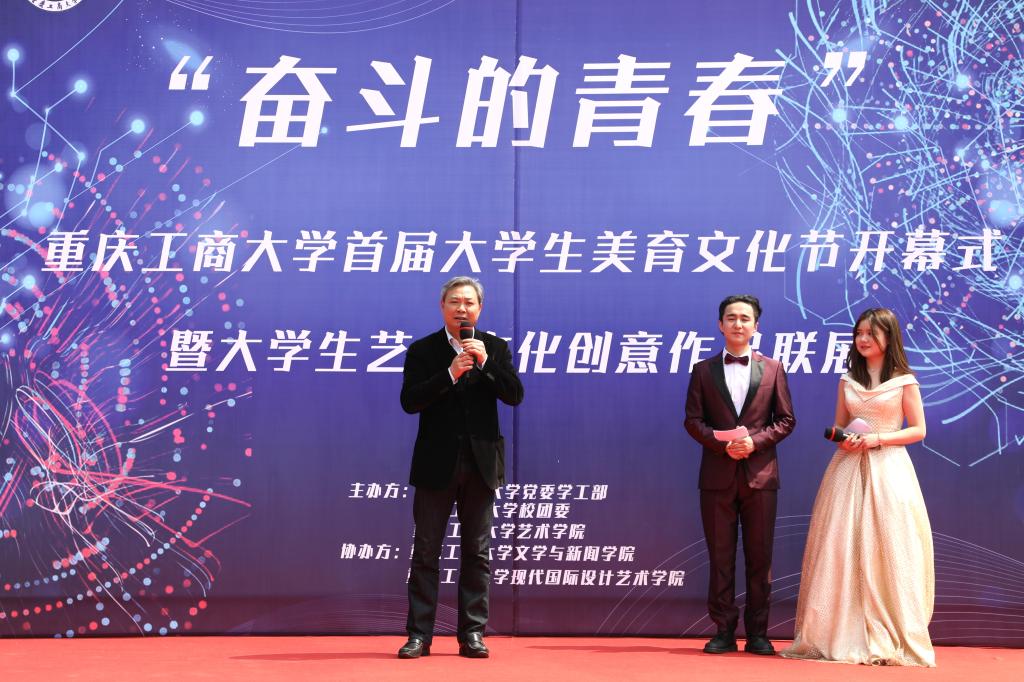 为全面落实习近平总书记在全国教育大会上的讲话精神,培养德智体美劳全面发展的社会主义建设者和接班人,3月20日,beat365首届“奋斗的青春”大学生美育文化节在南岸校区校前广场隆重开幕。beat365副校长李国军,校友总会副会长周勃,中国传媒教育实践基地联席主席唐维升,党委学工部、教务处、校团委、创业学院等部门负责人以及艺术学院、文学与新闻学院、现代国际设计艺术学院师生及其他各学院师生代表参加了此次开幕式。