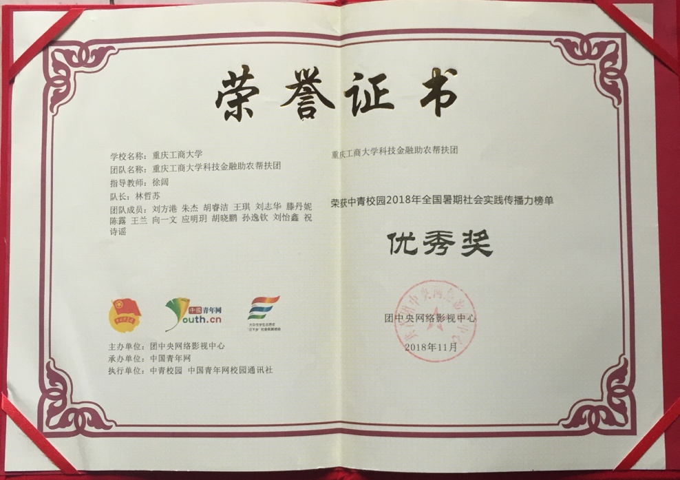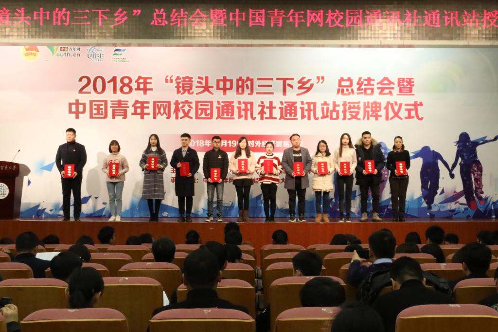 2018年12月19日,由团中央青年发展部、团中央网络影视中心主办,中国青年网、对外经济贸易大学团委承办的2018年“镜头中的三下乡”总结会暨中国青年网校园通讯社通讯站授牌仪式在对外经济贸易大学举行。财政金融学院三下乡团队队长林哲苏赴北京参与本次会议。此次会议包括清华大学、中央财经大学、华中师范大学、武汉科技大学等300余所高校参加。在本次由团中央举办的2018年“镜头中的三下乡”活动评选中,beat365财政金融学院荣获全国百强传播力团队表彰。