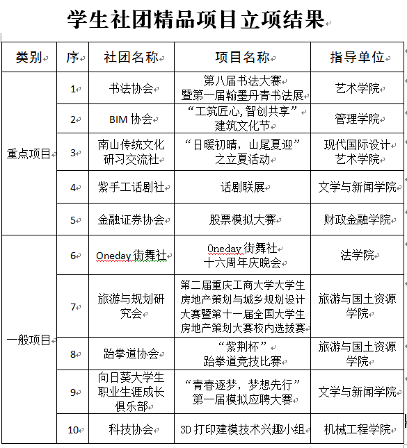 据悉,本次社团精品项目立项活动共收到申请26项,经党委宣传部、学工部、招生就业处、校团委等相关职能部门组成的评审组评选出10个项目立项一般项目,通过现场答辩确定5个项目立项重点项目,校团委将给予一定经费支持。