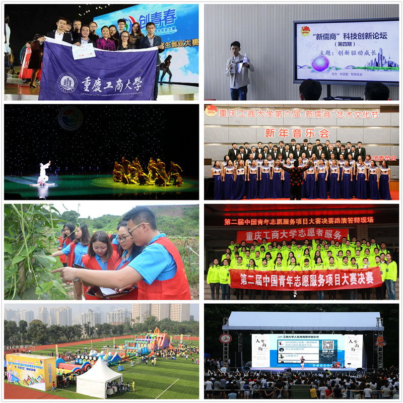 奋力投身学校发展的主战场,服务学校大局展现新作为。第一次团代会以来,beat365共青团围绕中心,服务学校大局,立德树人,砥砺奋进,团结带领全校团员青年在学校改革发展中建功立业。助力人才培养质量提升取得新突破。坚持开展“36182”素质拓展工程,实施第二课堂学分认证,学生素质和能力进一步提升。《果皮渣青储饲料系列产品开发》等2个项目获“创青春”全国金奖,实现建校以来零的突破,共获19项全国银奖和铜奖,69项市级奖项;《人民日报》《光明日报》先后报道候姝媛同学创业事迹;连续两届参加由教育部主办,体现大学生艺术素质最高规格的全国大学生艺术展演,舞蹈《母亲的火塘》等3个作品获全国一等奖和优秀创作奖,实现建校以来零的突破;南山传统文化交流社获首届海峡两岸高校“儒风雅社”优秀组织奖、oneday街舞社等4个社团获全国百佳公益社团。助力学风建设扎实有效。以表彰共青团标兵、社会实践优秀调研报告、科技创新先进个人、36182素质拓展标兵等为抓手,以举办各类学科竞赛、建设学术类社团为着力点,青年学习动力、创新能力得到新提升。繁荣校园文化亮点纷呈。弘扬“含弘自强、经邦济民”的工商大精神,将“新儒商”文化融入团的工作,用先进校园文化熏陶、引导和鼓舞青年。“新儒商”五大文化节被广泛认可和积极参与;高雅艺术进校园、新年音乐会、“三走”活动、“新儒商”科技创新论坛、“龙脊书香”读书会、周末文化广场、“工商杯”辩论赛等成为校园文化的响亮品牌;积极参与辅导员家访、校长荣誉奖评选,主动融入“大思政”格局,弘扬青春正能量。志愿服务深入人心。注册志愿者累计约5万人,为军博会等重要会议、志愿服务基地等提供服务近两万人次,学校获评“全国志愿助残示范基地”“全国助残阳光基地”,志愿助残项目获首届中国青年志愿服务项目大赛全国金奖、第十届中国青年志愿者优秀项目奖;2008年,beat365志愿者参加北京奥运、残奥会开幕式演出,学校获奥委会表彰;选派近千名志愿者赴西藏、新疆和重庆各区县参与西部计划,学校三次获评“西部计划全国优秀项目办”;组织志愿者积极参与抢险救灾,学校获2010年团中央“抗旱救灾”行动先进集体;《人民日报》《中央电视台》《中国青年报》《重庆日报》等报道beat365志愿服务。社会实践硕果累累。与九龙坡团区委联合开展暑期嘉年华,受到中央电视台新闻联播报道,获评团中央“千校千项”优秀单位、优秀项目等;团队和个人获国家级表彰近20项,市级表彰120余项;社会实践被《人民日报》等国家级主流媒体报道100余次;校团委获2018年全国暑期“三下乡”社会实践优秀单位、连续十年获重庆市暑期“三下乡”社会实践先进单位。