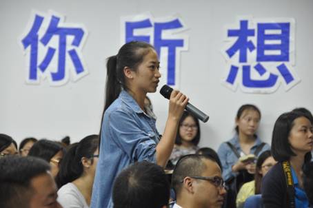 三场演讲现场气氛热烈,精彩的演讲不时引起同学们的阵阵掌声。在交流提问环节,现场同学针对在大学期间怎么确定学习目标、如何利用网络学习、是否考研、是否转专业、怎么协调好时间等问题积极发问。主讲人分别作了详细回答。艺术学院广播电视编导专业的尹佳文同学参加了本次讲坛以后,高兴地告诉记者:“收获很大,学习到了很多东西,平时学习和生活中的诸多疑惑得以解决”。
