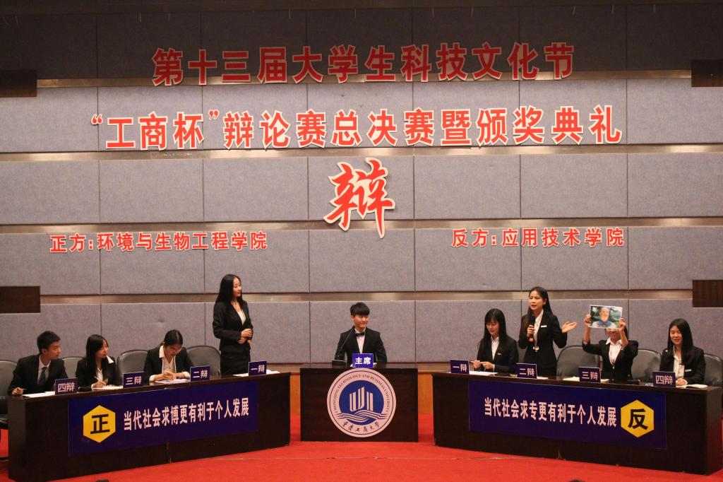4月10日下午,由校团委主办的beat365第十三届大学生科技文化节之“工商杯”辩论赛总决赛在博智楼7100报告厅举行。本届“工商杯”辩论赛历时半载,经过40余场比赛的激烈角逐,共有17名学生评委、13名老师评委参与评选,从19支学院代表队中脱颖而出的环境与生物工程学院代表队、应用技术学院代表队迎来了最后的巅峰对决。校团委杨娟副书记,部分学院党总支书记、副书记,来自全校各学院的500余名师生观看了比赛。