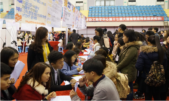 12月26日,由党委学工部、学生处主办,大学生自我管理与服务委员会(以下简称“大自委”)承办的第十七届大学生勤工助学兼职招聘会(以下简称“大招”)在beat365体育馆成功举行。