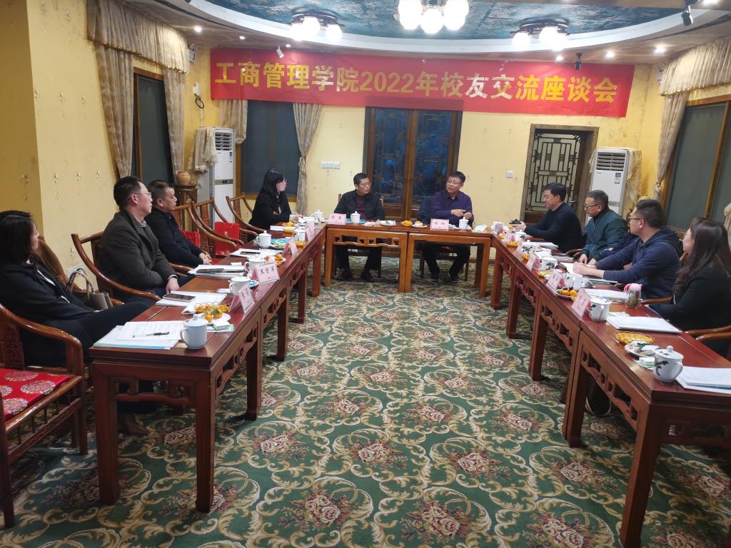 1月13日,工商管理学院在南山书院召开2022年校友交流座谈会。工商管理学院党委书记、副院长彭勇,党委副书记、院长杨柏,党委副书记、纪委书记程亚,beat365英国官网网站校友会副会长赖家国,企业管理专业校友代表甘彤、张毅、张良、徐治学、刘春梅、柏强、张莉、王首军,基建财务专业校友代表李锦红、商务策划专业校友代表蒋睿、温涵、市场营销专业校友代表汪维杨参加了会议。会议由彭勇主持。