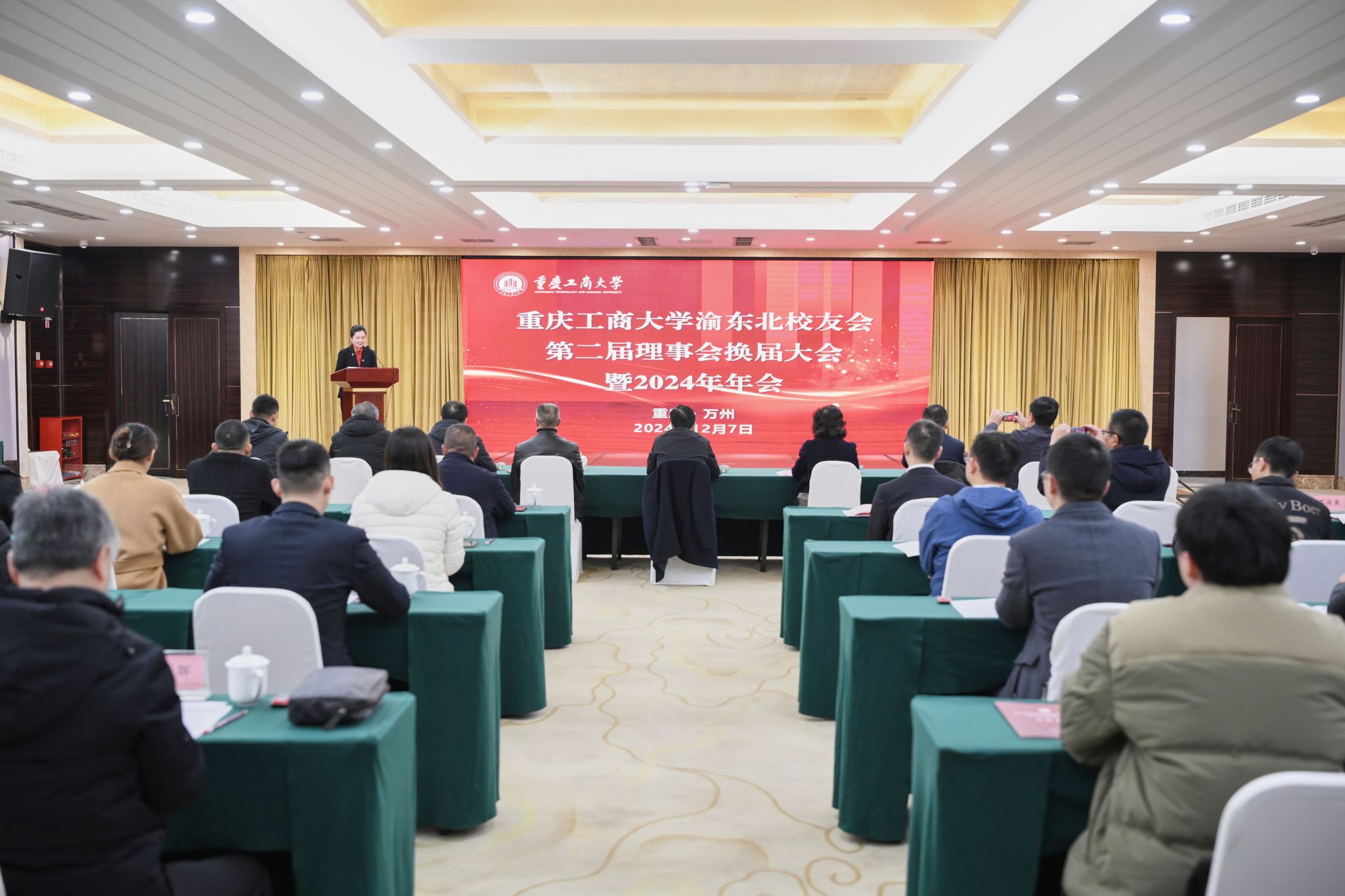 新当选的渝东北校友会第二届理事会会长王磊校友发言。他表示,要在学校与学校校友会的指导下,团结和带领渝东北11个区县的广大校友,不断拓展校友联络“半径”,持续打造母校与校友的联动平台,以校友情为纽带,弘扬母校“含弘自强、经邦济民”的重工商大精神,为地方经济社会发展做出新贡献。