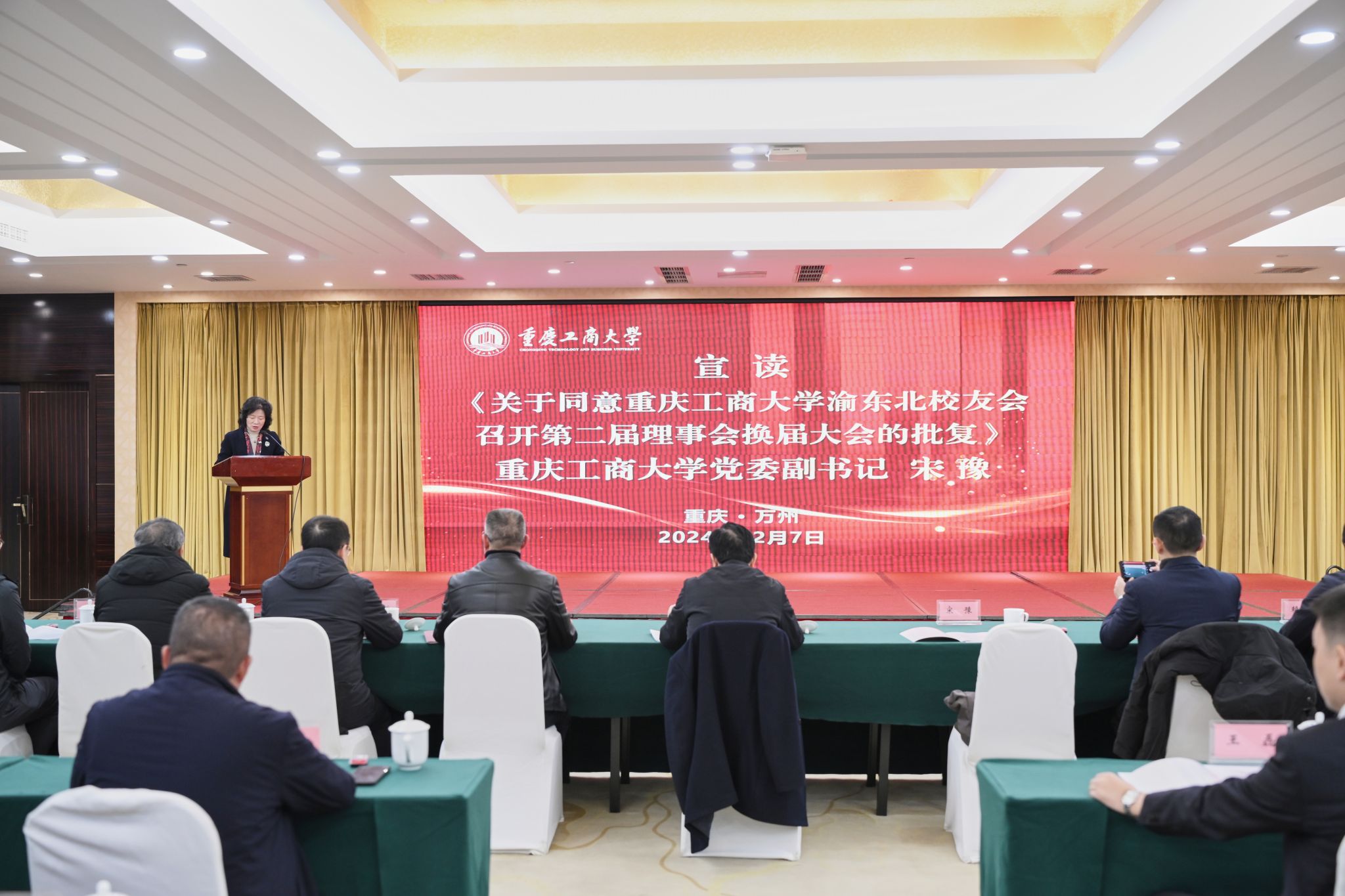 会上,宋豫宣读了《关于同意beat365英国官网网站渝东北校友会召开第二届理事会换届大会的批复》文件。